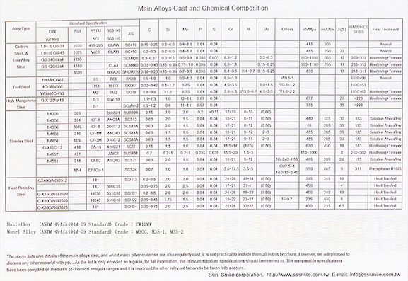 We can produce components in most alloys .Welcome and invite you to discuss your particular requirements with us. All the materials are matching National Standards:ASTM,JIS,BS,DIN.