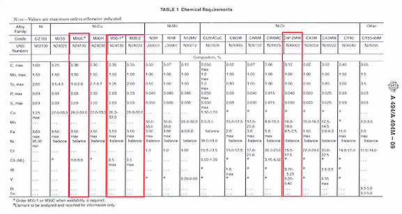 Monel Alloy (ASTM 494/A494M-09 Standard) Grade: M30C, M35-1, M35-2